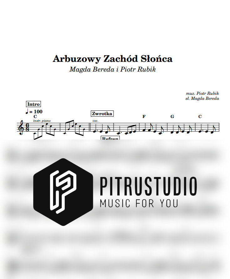 Nuty „Arbuzowy Zachód Słońca” – Magda Bereda i Piotr Rubik (PDF, różne tonacje na keyboard i inne instrumenty)