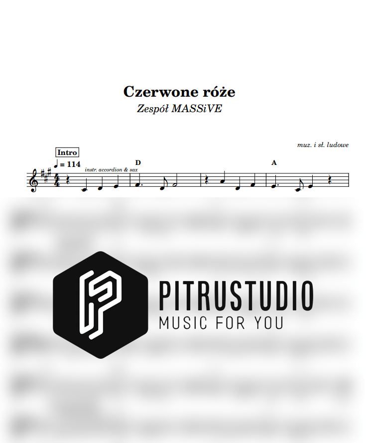 Oferujemy nuty na keyboard do utworu “Czerwone róże” z rep. Zespół MASSiVE. Nuty są dostępne w kilku tonacjach: